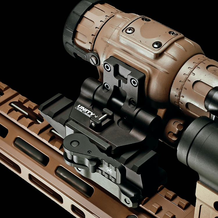Compact et léger, le Combat Thermal Mount (CTM) de Unity Tactical élève les dispositifs thermiques à une hauteur de co-visée de 3,9 cm.